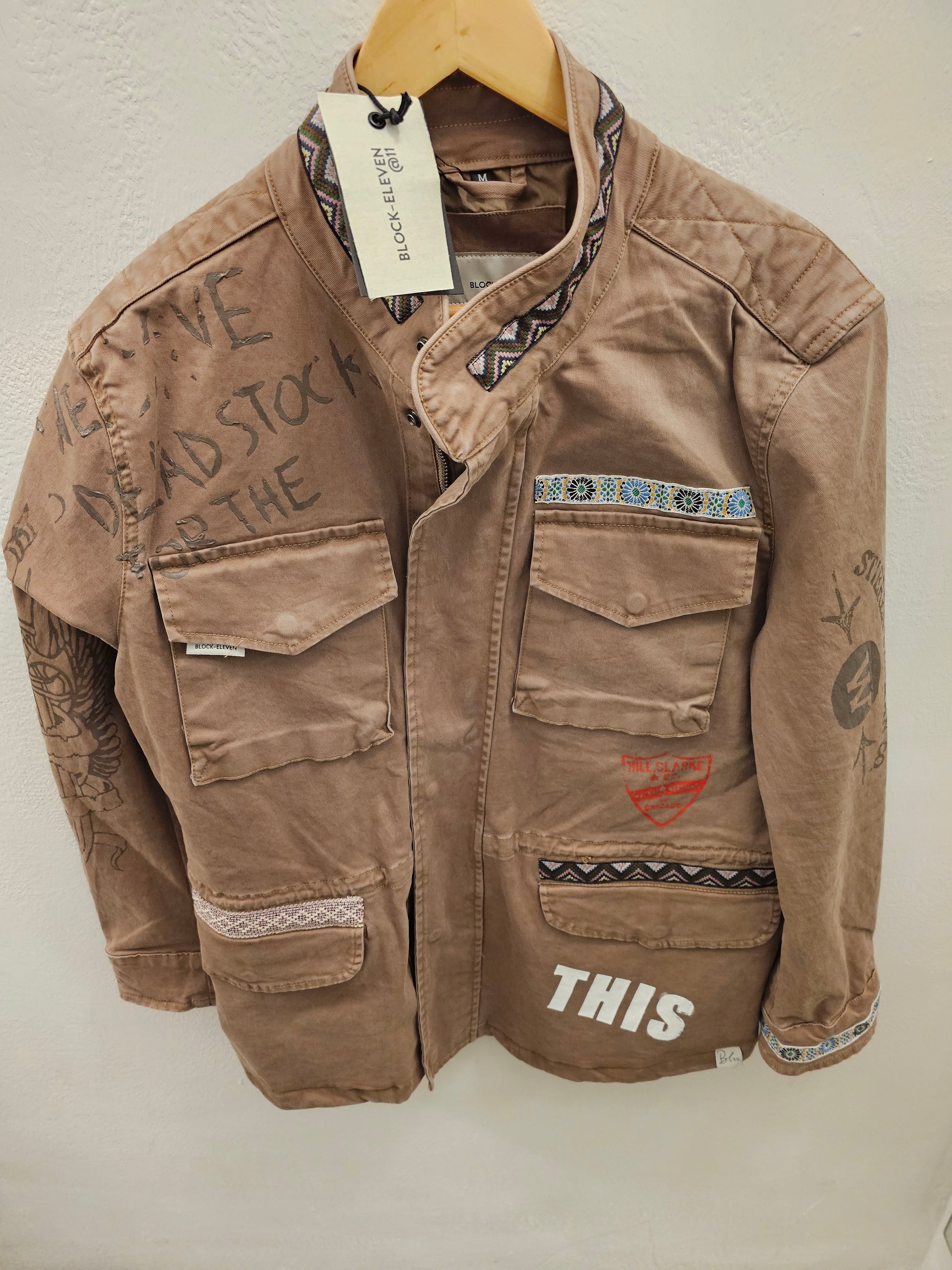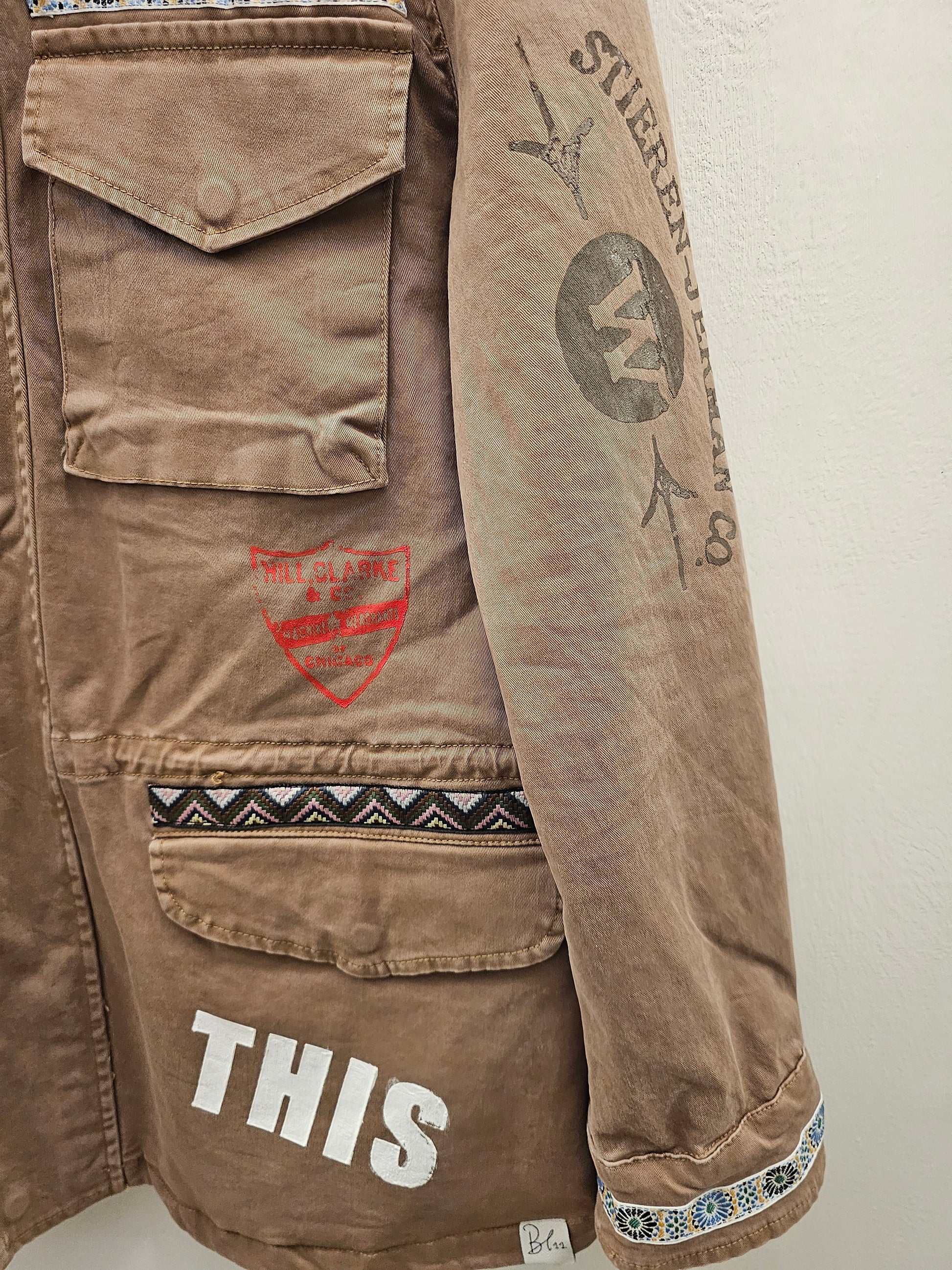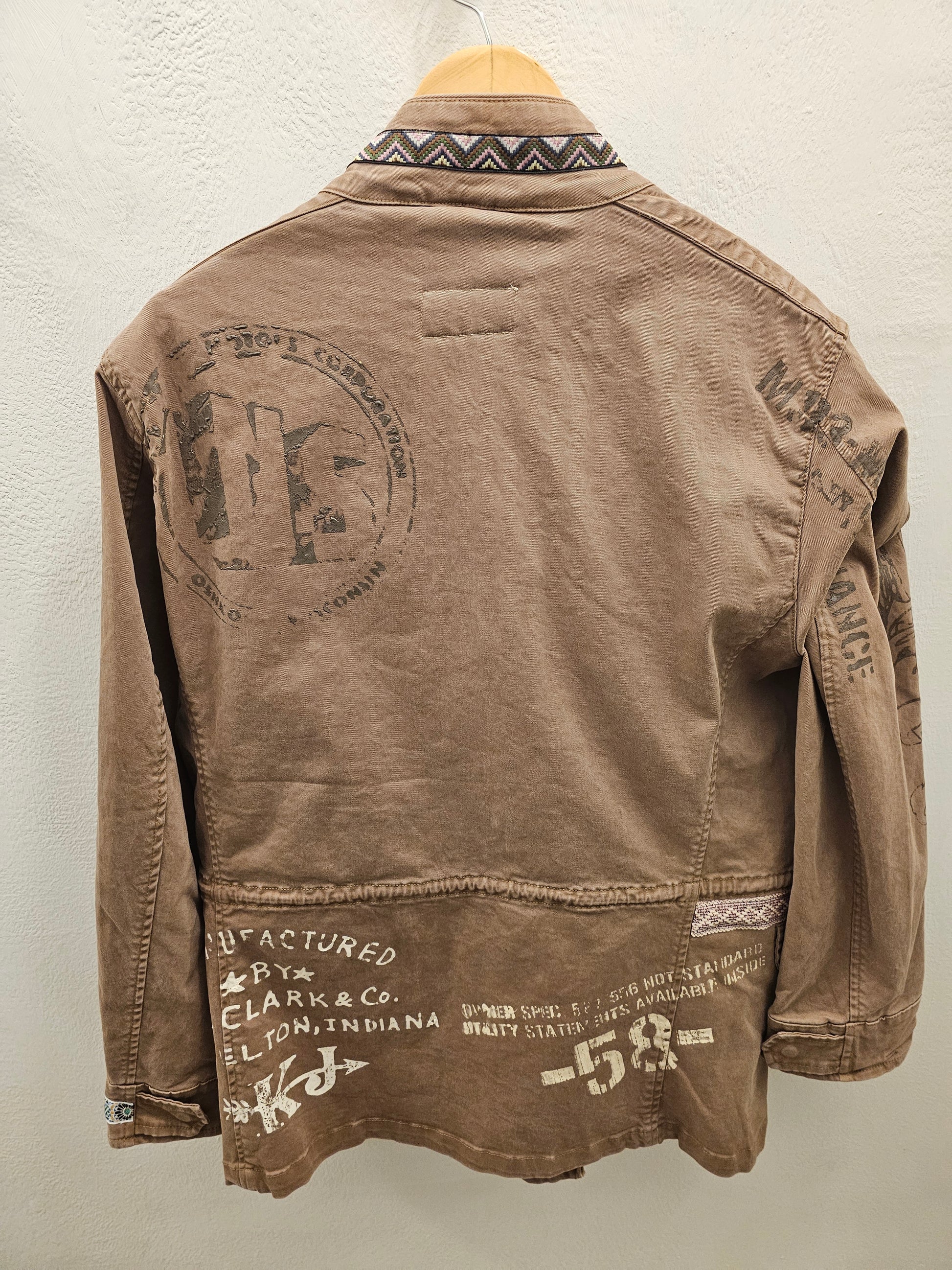 giubbino primaverile con doppia chiusura sia bottone che cerniera , dettagli ricamati su polsini collo e tasche , scritte in vernice anche sul retro , una giacca che non ti farà passare inosservato e che esprime stile e moda .