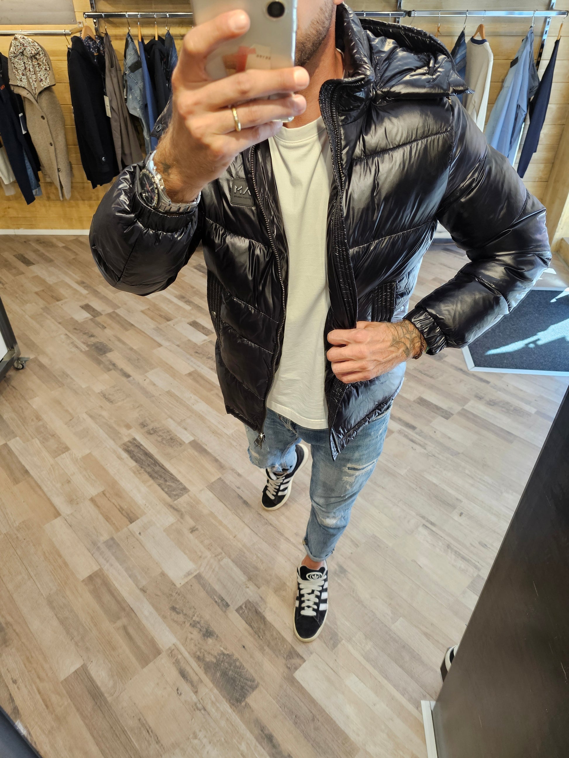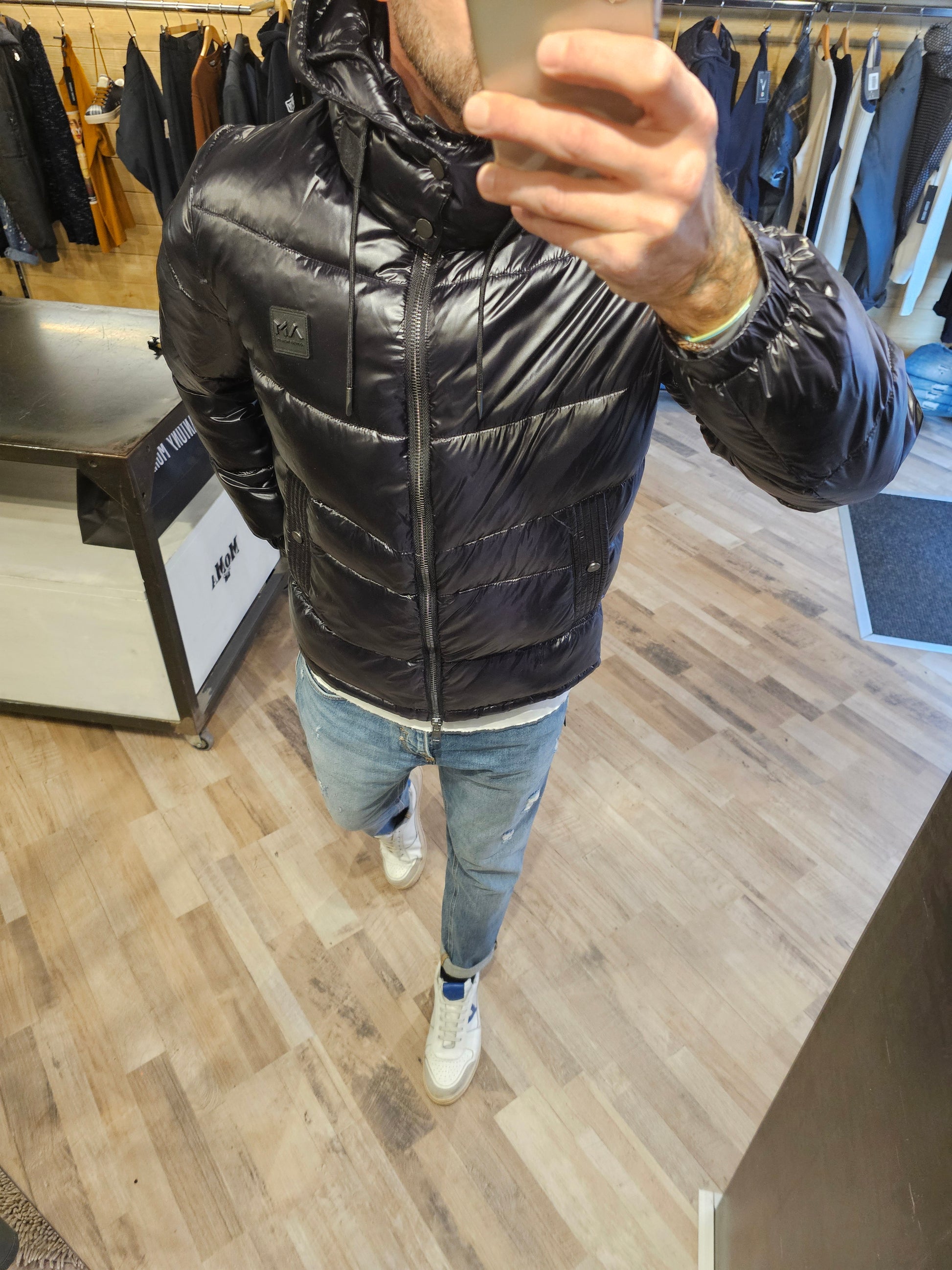Il giubbotto nero antony morato unisce stile audace e tecnologia avanzata: realizzato con tessuto ecoperformance, garantisce calore e sostenibilità. Il cappuccio con chiusura a bottoni a pressione e le cerniere in acciaio offrono resistenza e un tocco deciso. Il logo in gomma e acciaio in rilievo sottolinea l’attenzione ai dettagli, mentre la vestibilità regular assicura comfort senza compromessi. Colore nero lucido