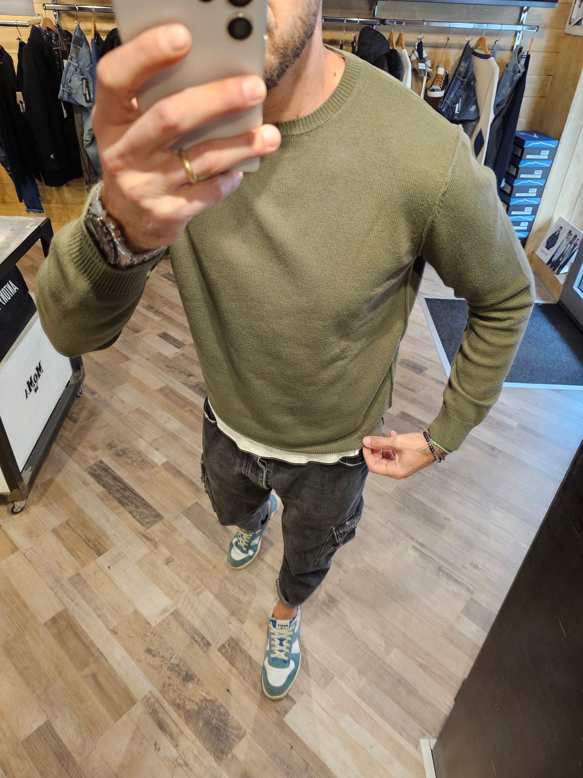 Scopri la maglia verdone dalla vestibilità slim. Le cuciture a vista non sono solo dettagli, ma veri protagonisti che esaltano il carattere unico del capo. Un piccolo logo in metallo, ricamato sul retro del collo, aggiunge un tocco di esclusività discreta. La cucitura a vista sul lato posteriore, ripresa centralmente, crea un gioco di forme che definisce una maglia dal design deciso e raffinato. Perfetta per chi osa distinguersi con stile.