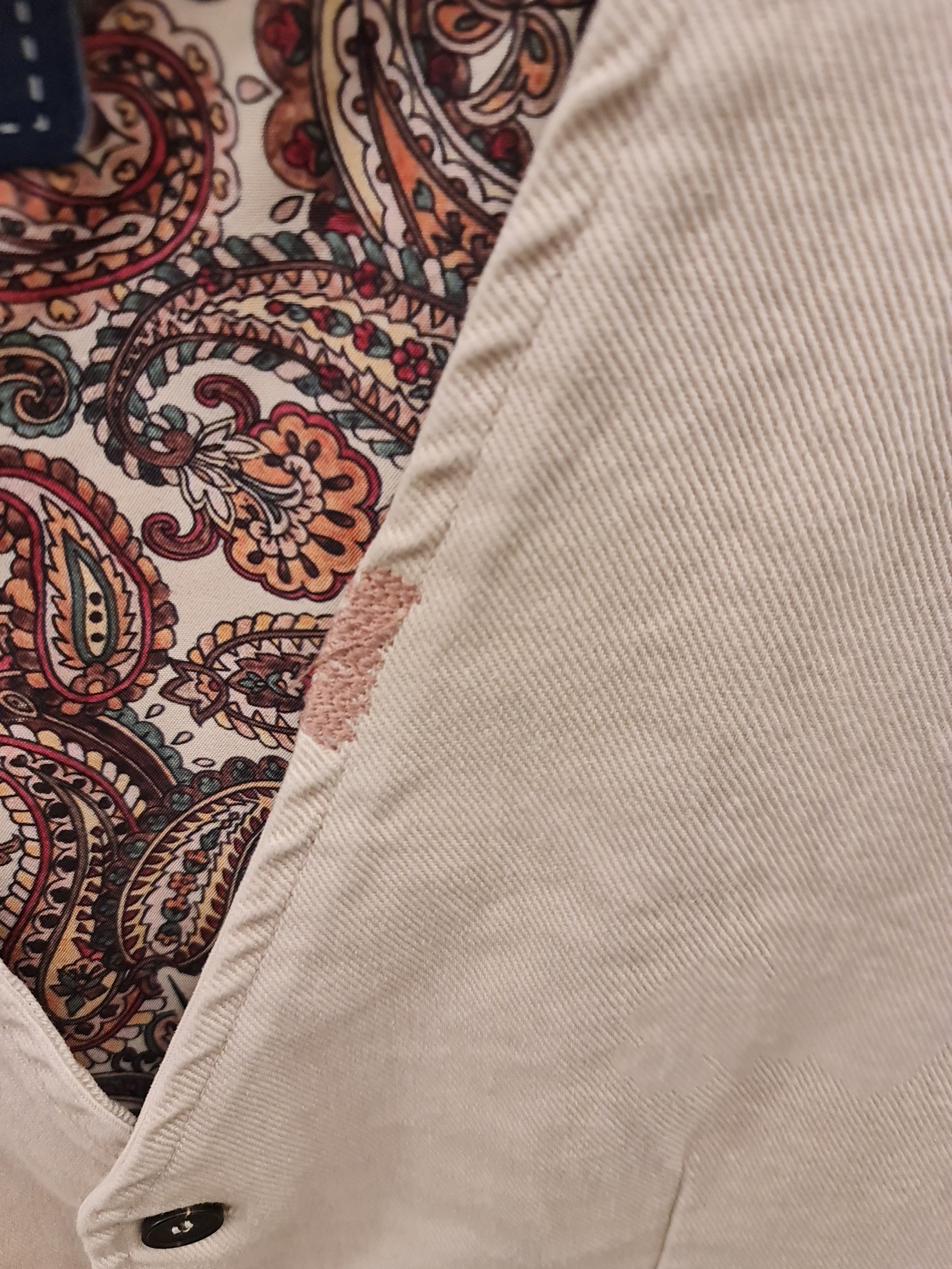 Questo gilet in jeans si distingue per i raffinati ricami in filo arancio, che conferiscono un tocco di originalità discreta, mentre il dettaglio del tessuto interno a contrasto aggiunge profondità al design. La vestibilità slim valorizza la silhouette, offrendo un equilibrio perfetto tra comfort e stile moderno. Indossato da un modello alto 1,75 m e peso 70 kg, taglia M, è una scelta ideale per chi cerca un capo distintivo e dal carattere sobrio ma ricercato.