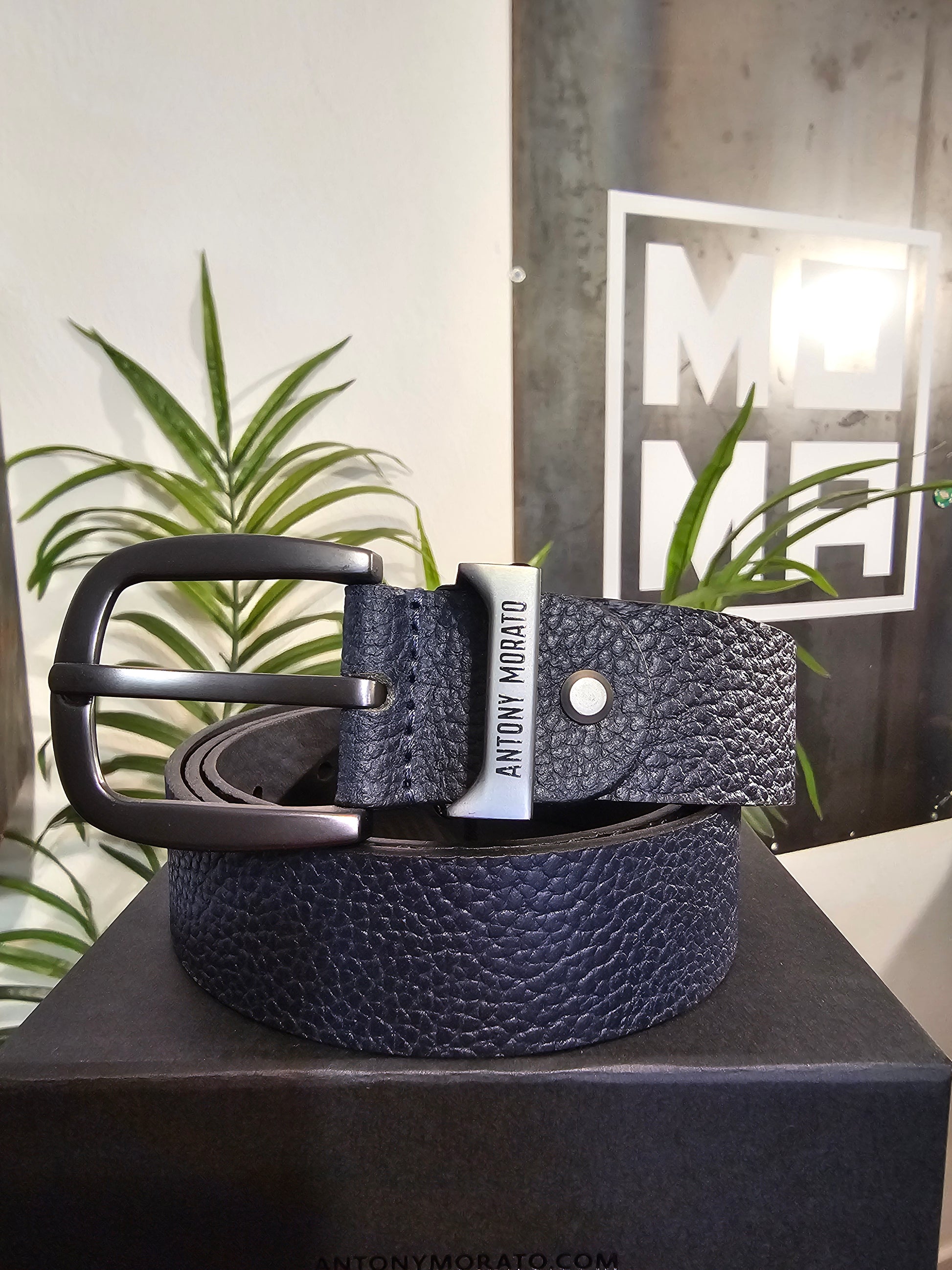 altezza standard, fibbia acciaio, vera pelle lavorata blu