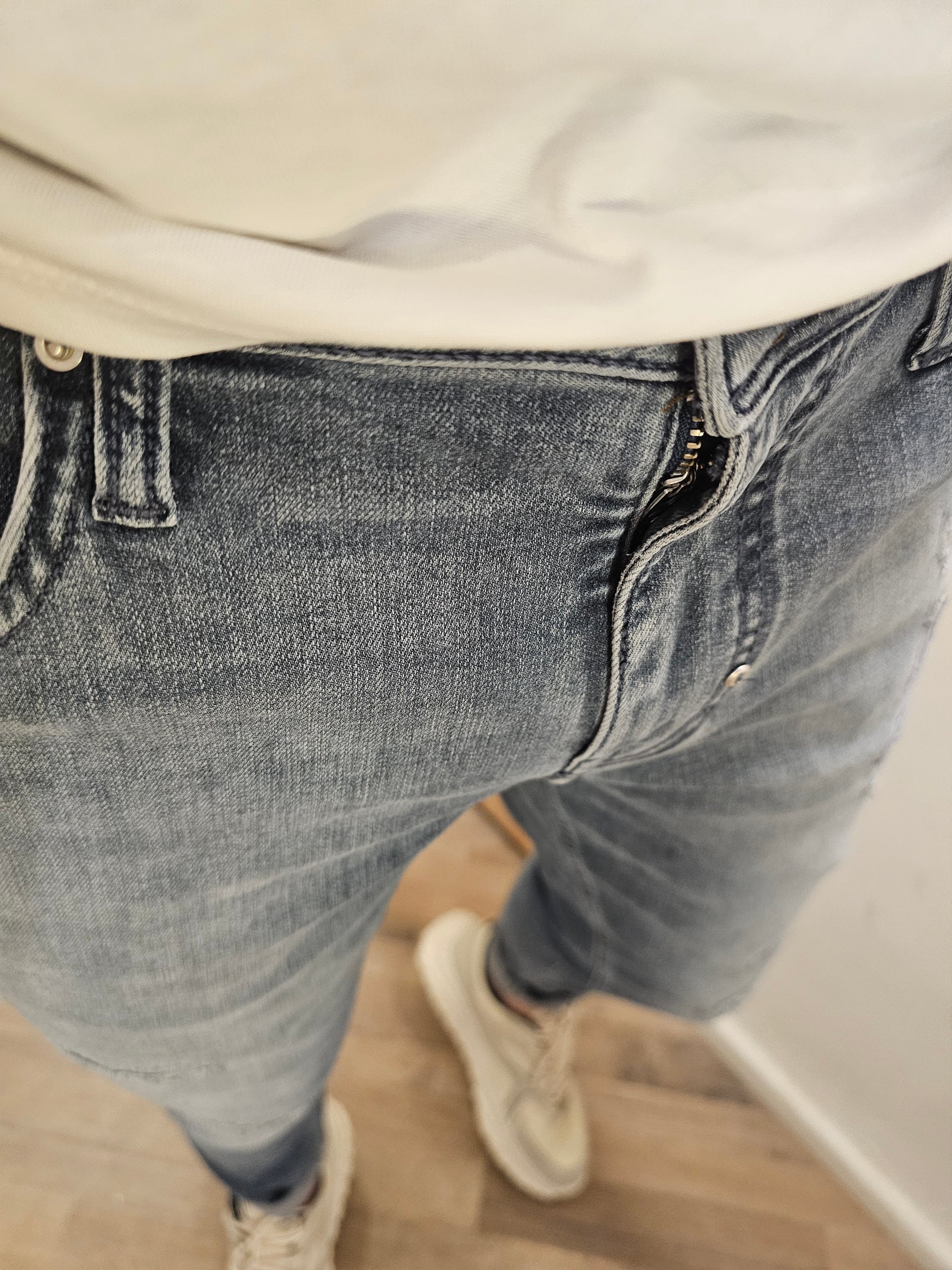 Il jeans ozzy cuciture ha una tela elasticizzata ed una vestibilità slim con lughezza regolare alla scarpa e fondo slim ( IN FOTO E' STATO RISVOLTATO))