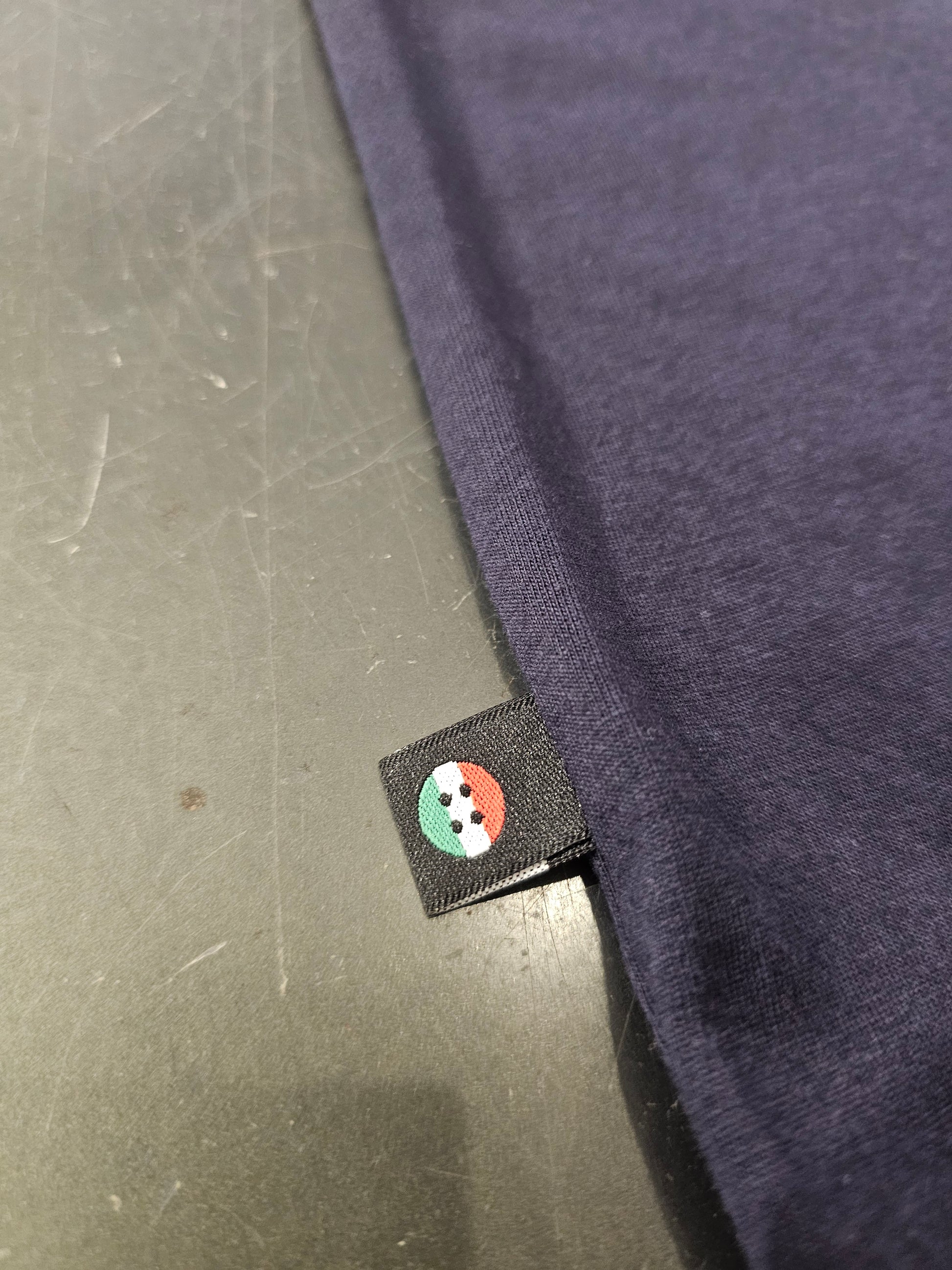 vestibilità slim colore blu e tasca cucita a contrasto , collo con taglio laser , logo v2 dietro al collo in colore bianco